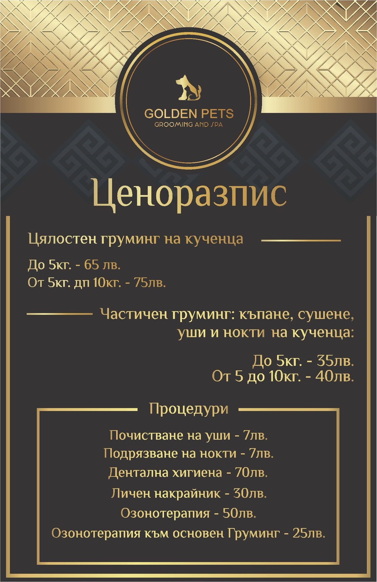 Посещенията ни в груминг салона са истинско удоволствие!Всеки път оставаме изключително доволни от вниманието и професионализма там!Кученцето ни се посреща с много любов, а след процедурата изглежда прекрасно- чисто и спретнато до последния детайл.Салонът е изключително чист и поддържан.Препоръчвам с две ръце на всички, които търсят надежден и грижовен груминг салон! 💕🐾